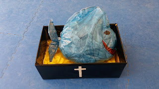 Hemos recorrido las clases de primaria con el ataúd y el cuerpo presente de la difunta sardina para que nos acompañaran en nuestro dolor y nuestro llanto.